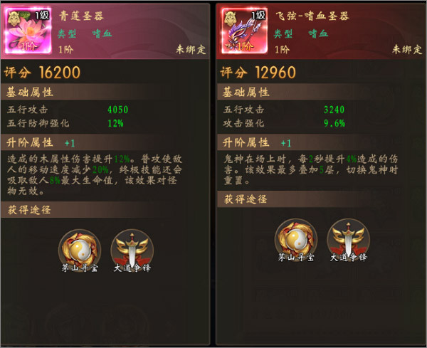 比如我们看到这两个圣器,属于嗜血类别,那么也需要找到对应的鬼神类型做一个匹配。