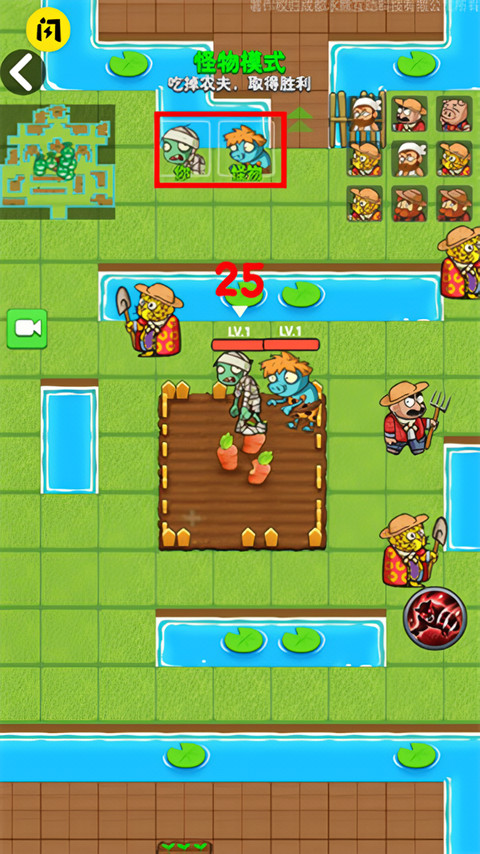 4、操控僵尸不断的进攻农夫并将其淘汰。