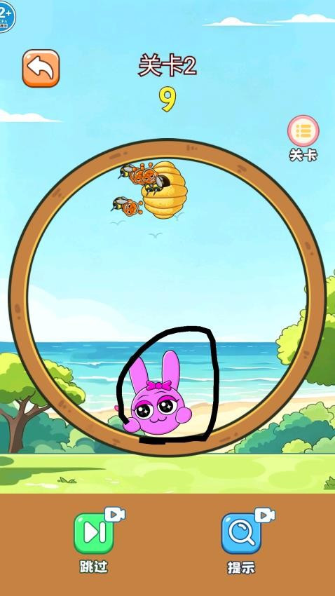 1. 核心就是围着兔子头画线,蜜蜂来了线挡住,线没画到位蜜蜂就钻空子,得把口子全封死。