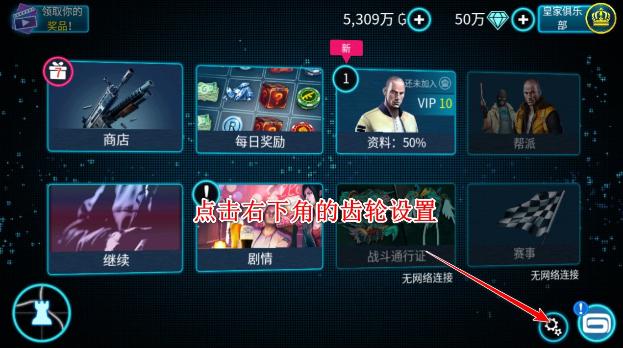1、进入游戏主页后点击右下角的齿轮设置