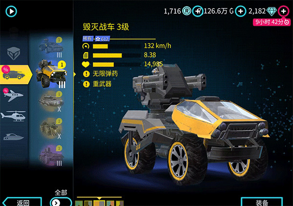 Top2毁灭战车:在骷髅战车出现之前这两车在维加斯里有着不可撼动的地位。主武器可以连续发射炮弹,副武器威力稍逊。不过也可以对空。载具本身也有碾压的技能。可以把其他载具压扁。