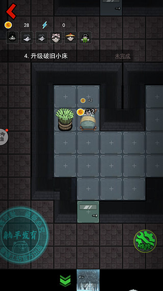 先提升床的等级和建造两个炮台,因为这个时候猛鬼还没有到来,所以优先提升床铺的等级快速获取金币;然后再去提升门的等级,之后床铺的等级可以暂停一下,优先提升门的等级,否则很容易被猛鬼突破,提升到需要电力的时候再去商店购买游戏机,否则会很容易被猛鬼突破。