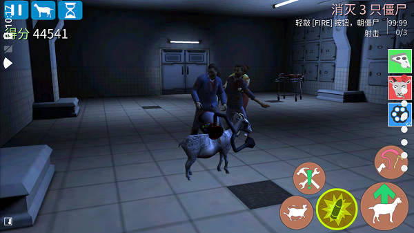 模拟山羊僵尸版游戏是一款沙盒类型的动作游戏,整体以开放地图和自由操作为主要玩法,玩家将操控一只山羊在充满僵尸的场景中活动。进入游戏后可以在城市和野外区域自由移动,通过撞击、跳跃、舔取等方式与僵尸和环境产生互动。地图中分布着各类道具和材料,可用于合成不同工具或武器,同时需要留意角色的饥饿状态,通过进食维持行动。游戏提供多种模式,玩法节奏和限制条件有所不同,整体流程以探索、互动和生存推进为主。