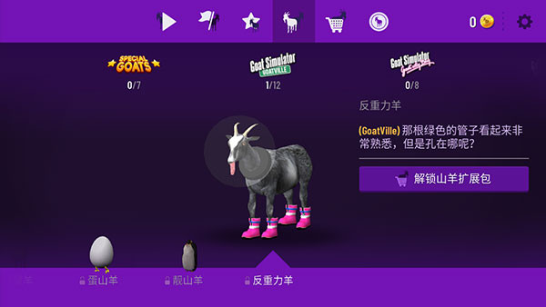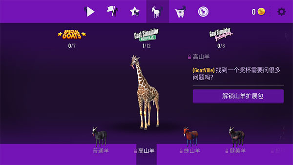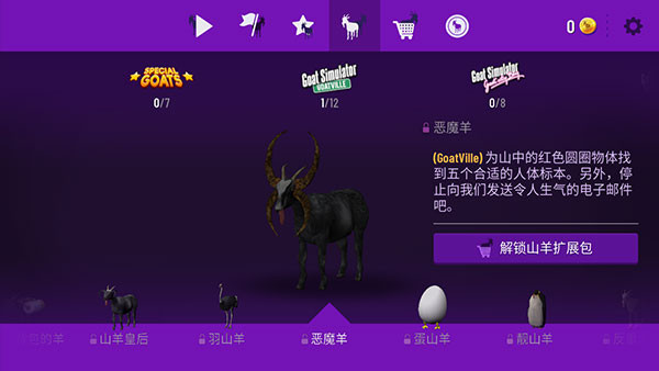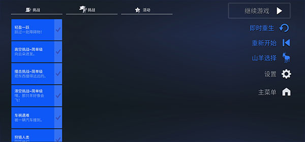 3、完成游戏给的任务,就可以获得得分,可以解锁不同的山羊。