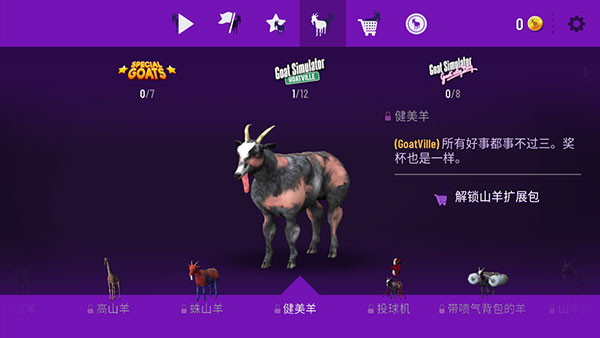 2. 可解锁多种造型和能力不同的山羊