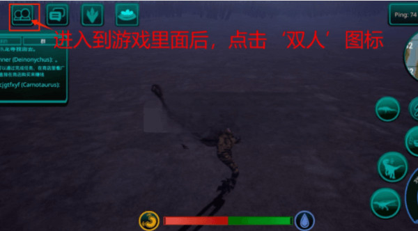 2、联机生存:能够和小伙伴一同生存,变身为不同种类的恐龙,一起在这个恐龙世界中存活下来。