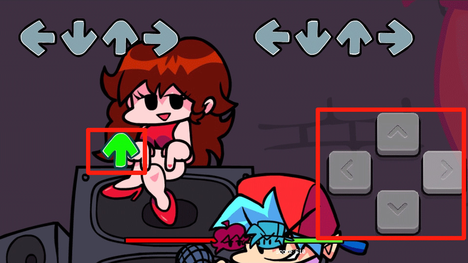 3、游戏开始后会出现上下左右的箭头,但箭头快接近上方箭头是,点击右边相对应的箭头