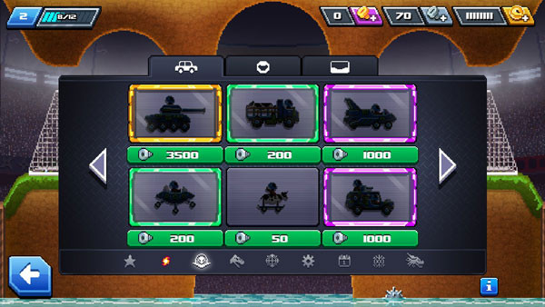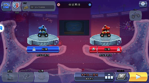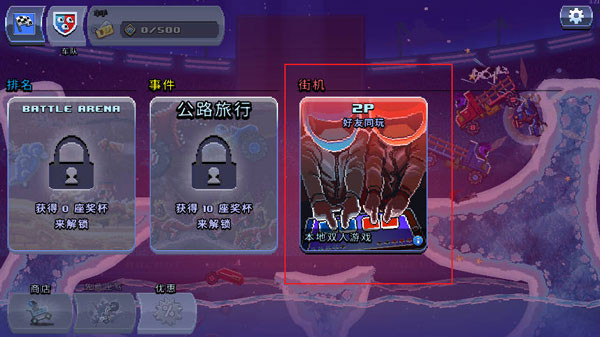 2D横版的挑战模式,玩家们将进入一个封闭的赛场之中,驾驶自己的赛车撞向对手,谁先撞到对手的头部即获得胜利。