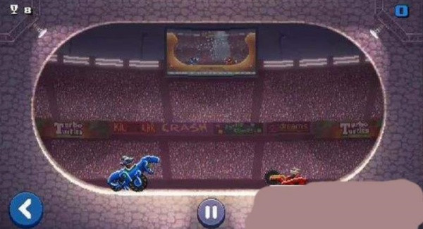 2D横版的挑战模式,玩家们将进入一个封闭的赛场之中,驾驶自己的赛车撞向对手,谁先撞到对手的头部即获得胜利。