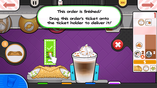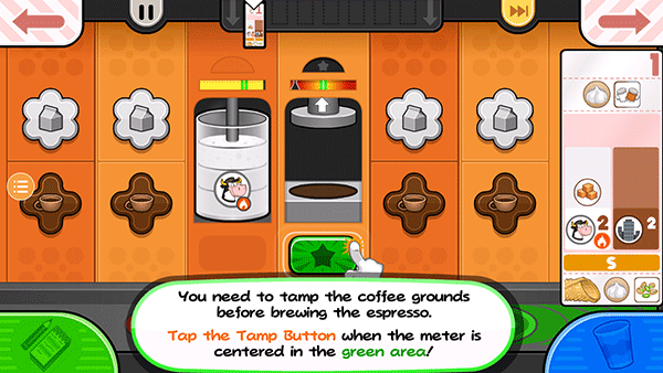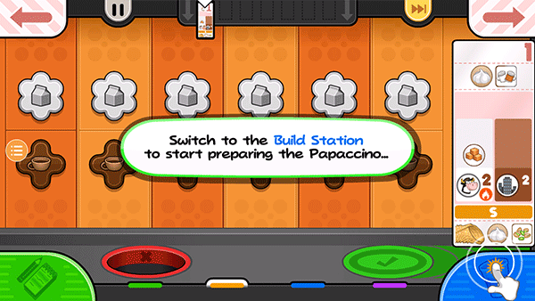 14、贾纳纳想要一个小的Papaccino,点击小杯子的S按钮。