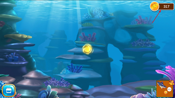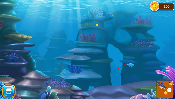 2、高清的深海游戏世界背景,在这里控制着卡通小鱼开始游戏;