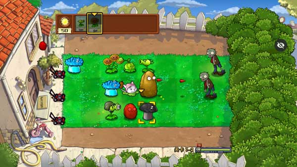 5、当各种各样的植物出现并防御时,玩家需要做的就是确保僵尸不会闯进家门吃掉你的脑子。