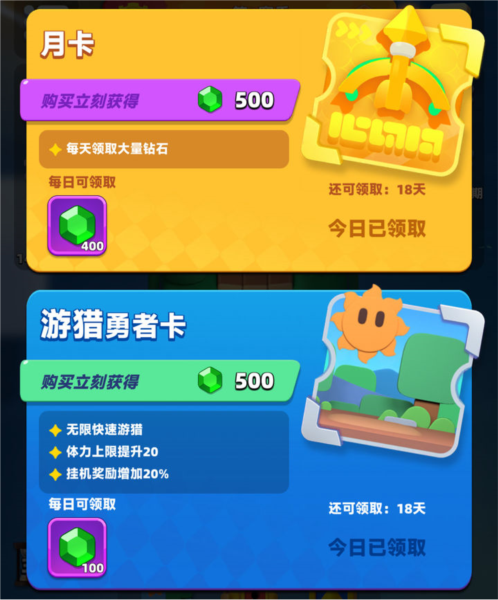 3.月卡:永久补给卡低配版,每日可领400钻,每月都要续费