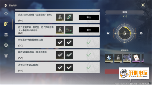 2、漂泊日志一共有六个阶段,将六个阶段的任务全部完成可以获得480星声。
