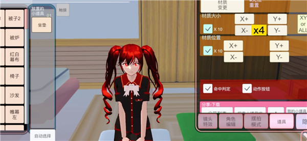 2、接着换回夏季校服,然后继续点开坐垫编辑,在材质位置处点击【x-】4次。
