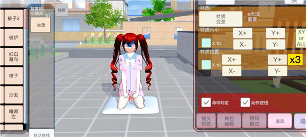 4、换回夏季校服后,勾选材料位置,点击【x+】2次,材质大小【+】3次,【Y-】3次。
