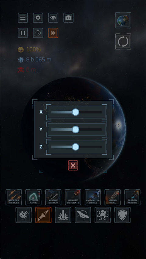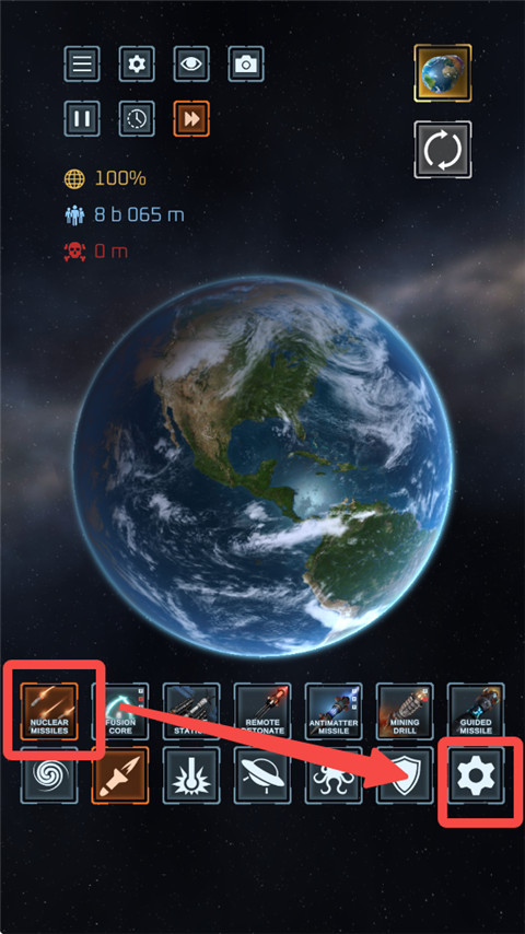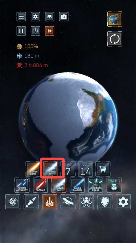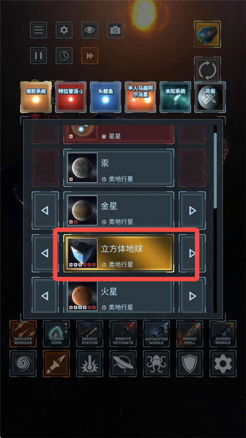 2、先用毁灭激光炮把它完全毁灭,点击重置行星。