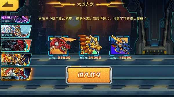 → 返回主界面 → 打开「每日副本」 → 定位「六道赤龙」专属关卡 → 上阵3台自有机甲发起挑战;