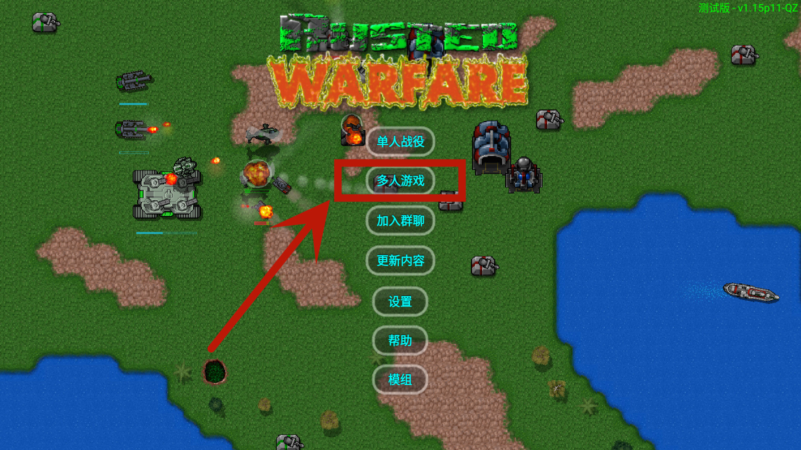 1、下载好铁锈战争中文版,打开游戏后,点击【多人游戏】。