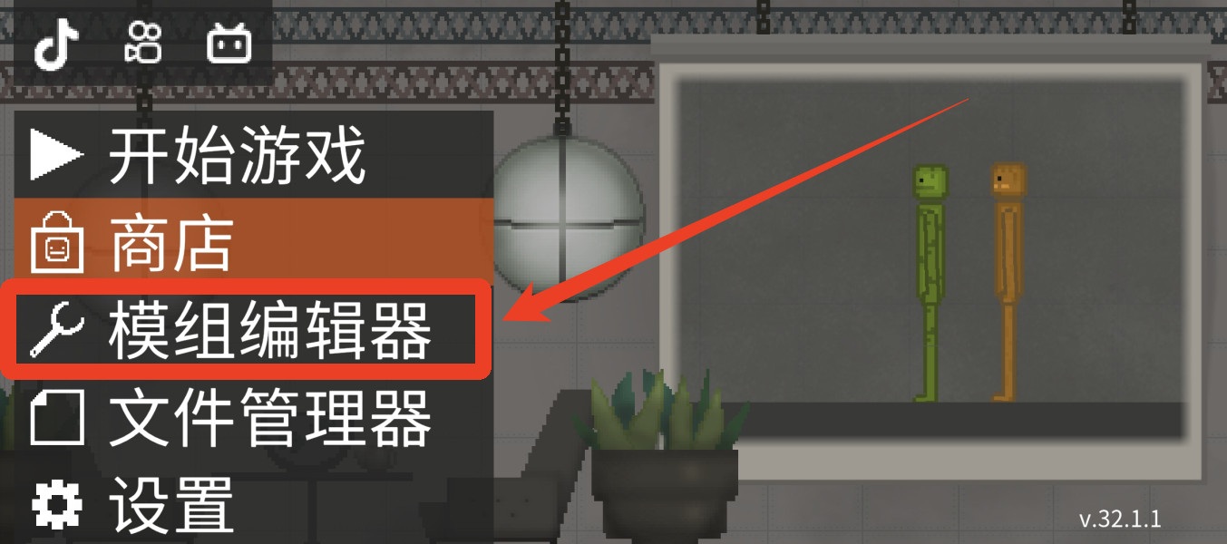 2、之后进入到游戏点击第三个【模组编辑器】。