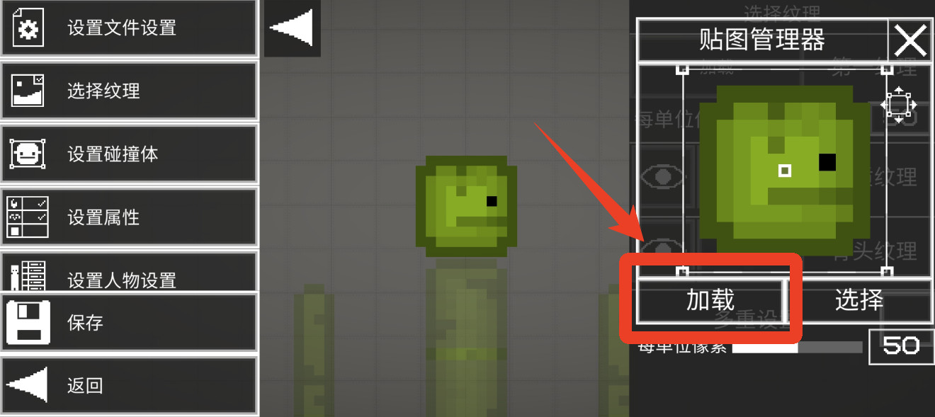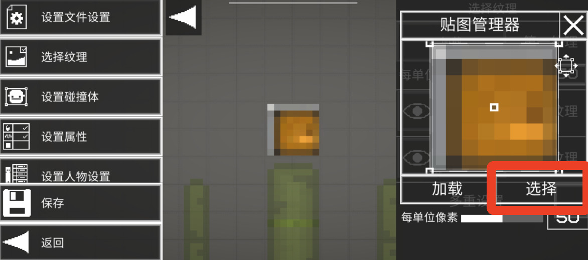 1、首先我们需要自己画一个侧面的像素人物贴图素材,然后保存到手机内。最好选择适合甜瓜角色的像素尺寸。