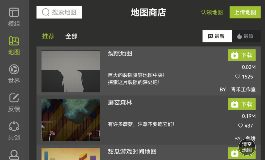 8、除了模组,还有地图商店和世界商店,不同的地图和世界等你下载体验。