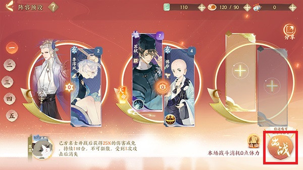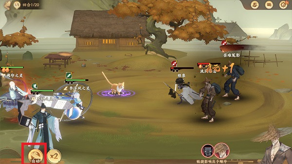 6、在战场上点击自动,名士们就会自动出招打败恶灵