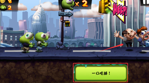 2、点击红框标注的一口吃掉按钮,让怪物吞食人类。