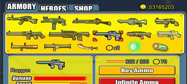 2、购买生命以及能量球以后,紧接着是这种破坏力很大的激光枪(在开始的几关里作用很大),然后再接着购买这种让人让人不能动弹的枪支。