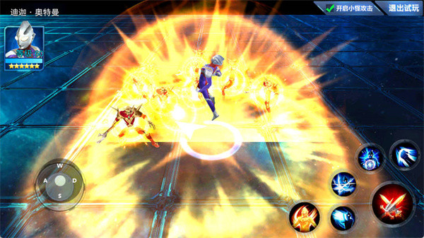 在当前版本中,迪迦的一技能【手掌光箭】与二技能【强力踢击】表现尤为亮眼。这两个技能具备冷却时间短、出手速度快、伤害高的共同特点,虽然不具备无敌效果,但在前期推图和冲关中效率极高。建议优先升级这两个技能,其余技能可后续逐步投入资源。