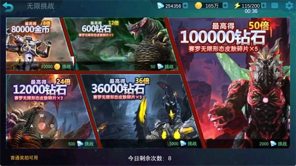 若想加快等级成长,【无限挑战】是一个不错的选择,不仅能获得钻石与金币,英雄经验收益也明显高于普通剧情关卡。建议每日合理清空体力,包括成就奖励和在线时长赠送的体力,以最大化战力成长效率。