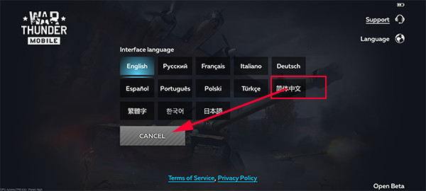 4、选择简体中文或者繁体中文后,点击下方“cancel”切换一下就没问题了