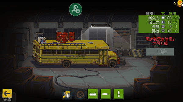 完成挑战之后我们可以使用收集到的物品给各个作战单位升级,可以提高他们的血量、攻击力等属性,当然了,我们的校车也是可以升级的。