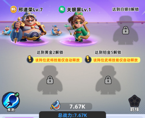 4、不断解锁收集更多武将,合理搭配武将阵容出击争夺排位赛奖杯。
