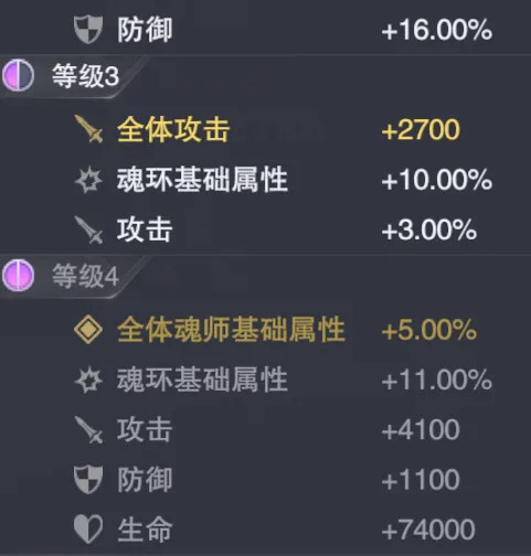 ③所以在升级源魂力的过程中,我们不仅需要多个自身魂师的源魂,其余魂师的源魂也比较重要,另外大家请注意,源魂力等级达到4级时可以额外激活全体魂师基础属性的提升;