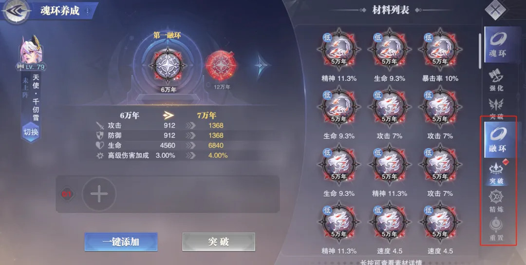 特别提醒:融环系统对于5万年同系魂环的消耗比较大,大家需要特别注意过去魂环的储备量!