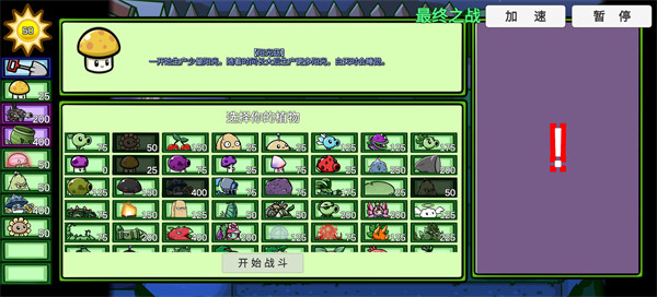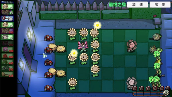 1、最终之战为夜晚环境,玩家携带植物可以考虑夜间的阳光菇。