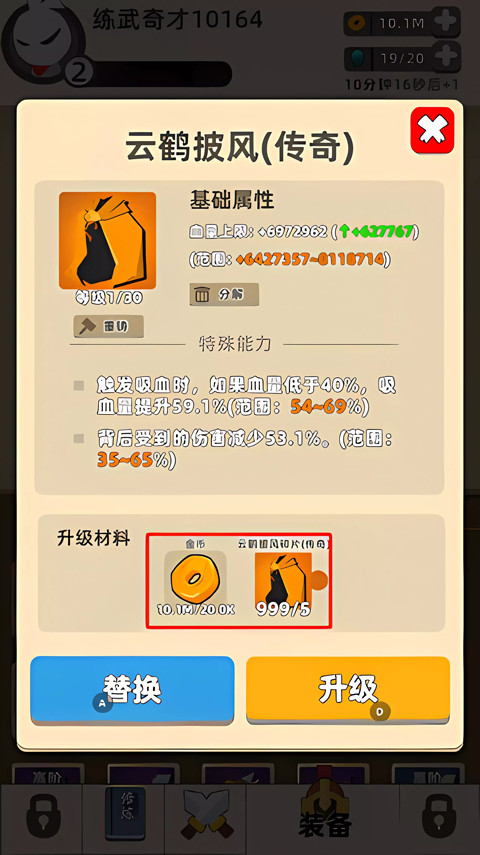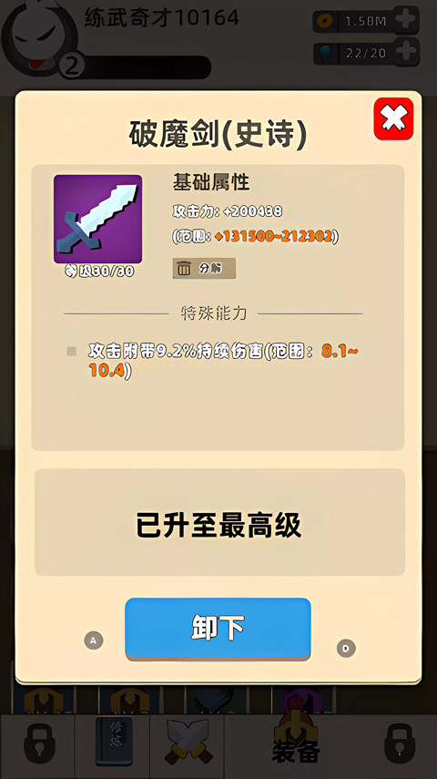 完成关卡会获得武器碎片,合成武器可以装备到角色身上,而且装备还能进行强化升级,能够大幅度提升你战斗力。