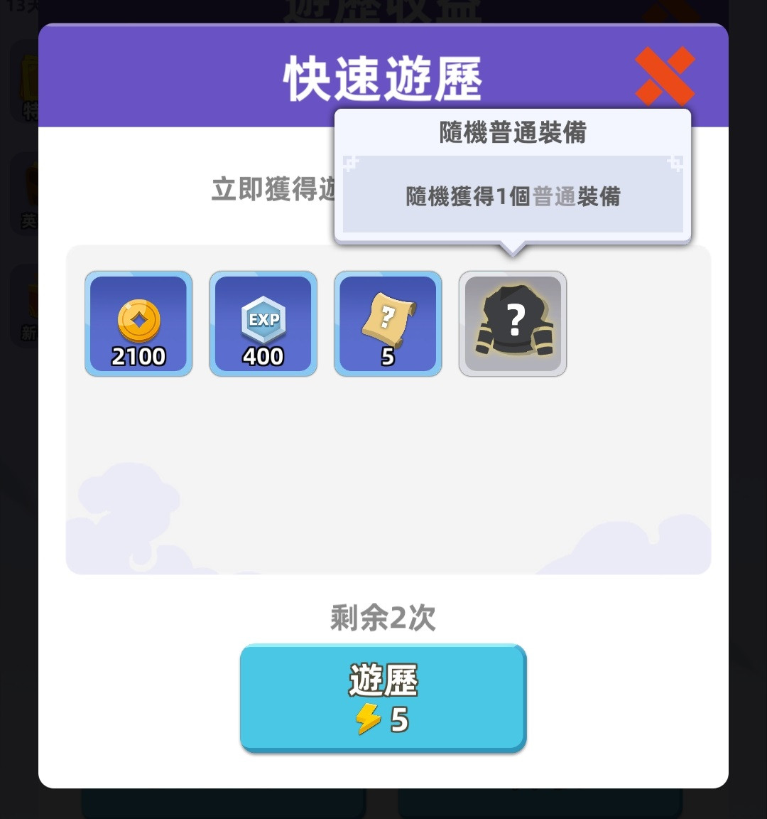 6、当你通过了第一章可以解锁游历功能,游历完成后也有机会获得随机装备。