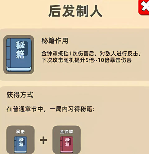 效果:触发金钟罩抵消伤害后,下次攻击提升5-10倍暴击伤害。