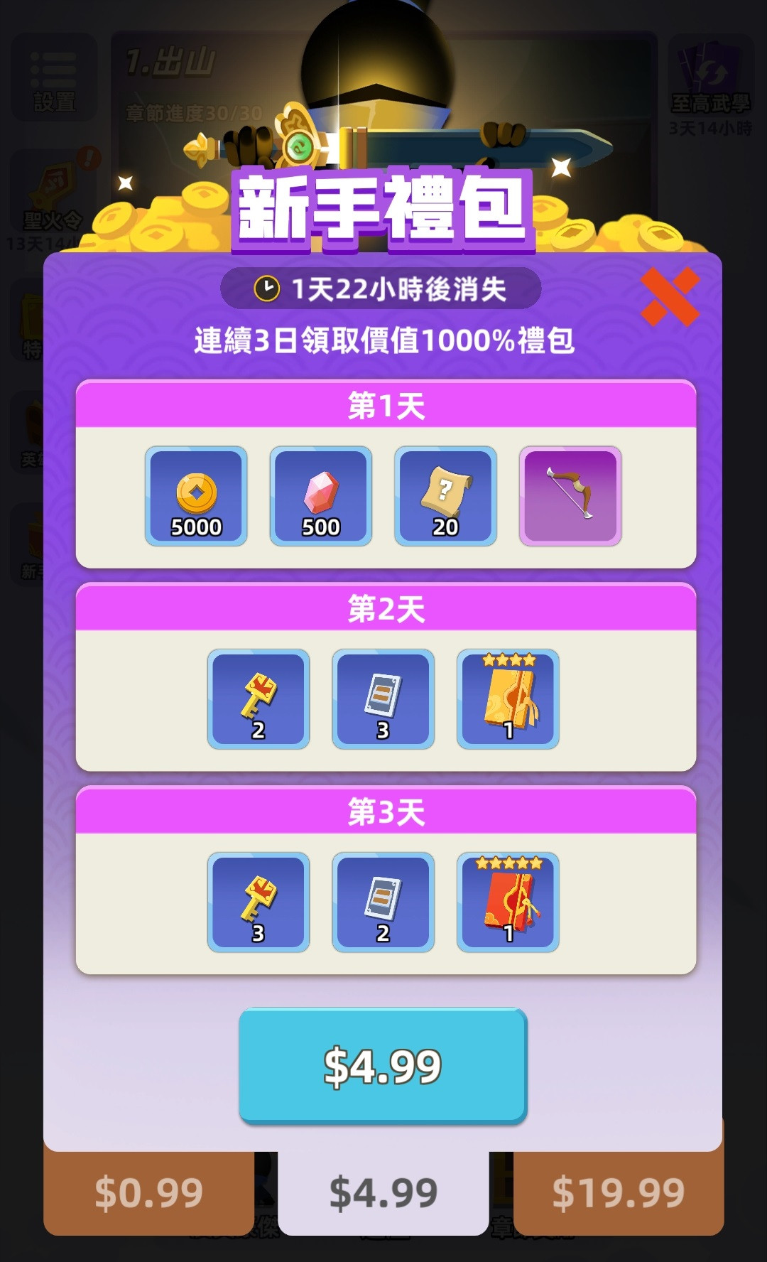 4、章节奖励或章节礼包同样的也可以获得白银钥匙在白银宝箱内抽装备,这个方法获得的钥匙比较少。