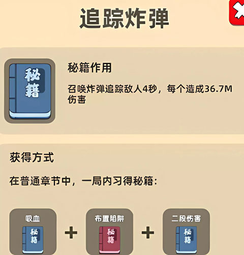 效果:召唤追踪炸弹,追踪敌人4秒,造成伤害。