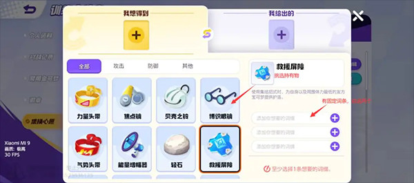 首先是词条界面,在持有物右下角进行点选,这里是有三个选项供你选择的,训练家们可以自由的进行三选一,但要注意第三个词条是随机刷新的,所以训练家可要好好甄别,别选错了,不然发布以后词条锁定就只能下架或者重新编辑很浪费时间的。