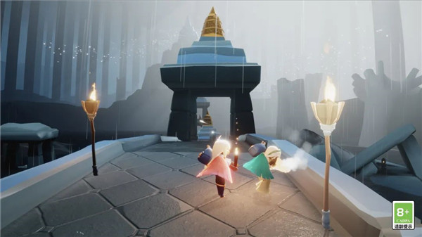 1、找到每一关的子民,穿过艰难险阻,最终跪坐在石碑前接受祝福,就是通过这一关了。通关后我们会来到一个祭坛,从这个祭坛周围的门前往下一关或是回到遇境。
