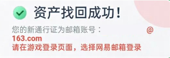 步骤九:资产找回成功,后续可登录该网易账号(或通过官网登录官方客户端)继续体验游戏。