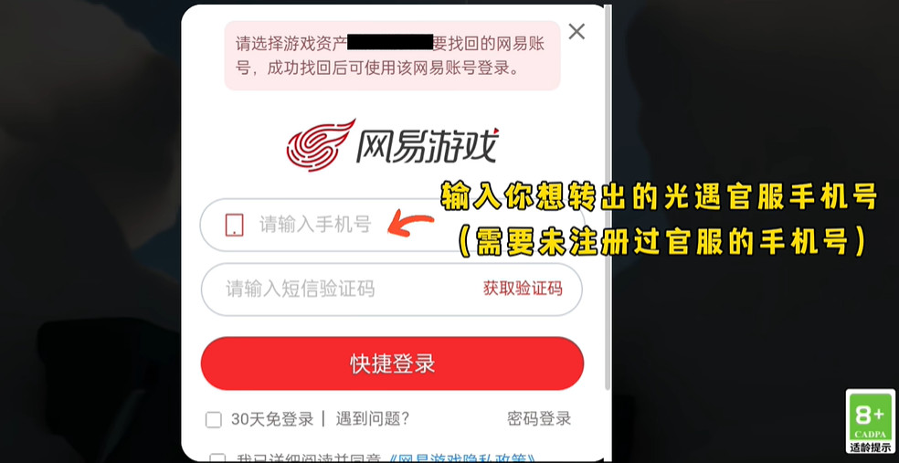 3、在弹出的界面中,登录未来要使用的官服账号。注意:该账号需要绑定从未注册过《光·遇》的手机号。