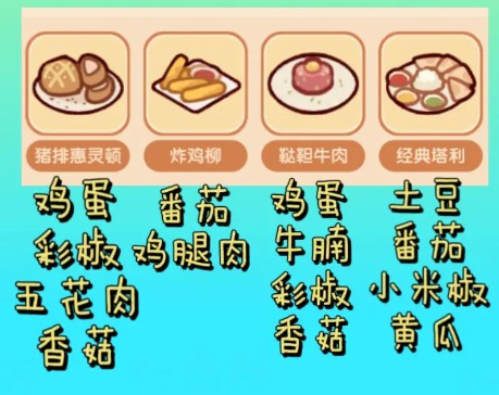 1、猪排惠灵顿、炸鸡柳、鞑靼牛肉、经典塔利