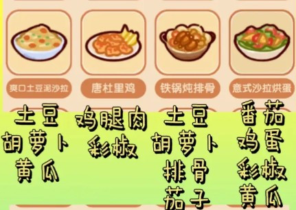 2、当红辣子鸡、糖醋排骨、萝卜煨排骨、什锦土豆饼