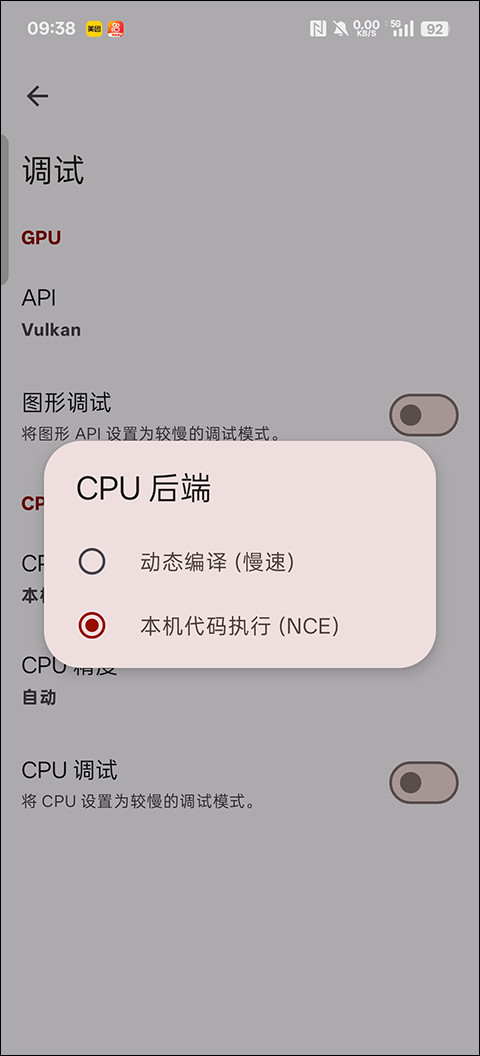 路径:右下角齿轮-高级选项-调试-CPU后端-NCE