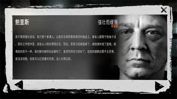 鲍里斯是个弱点与优点同样突出的人物。强大的恢复能力让他不怕受伤,高血量配合头盔与防弹衣也可以增加他的生存力。而且鲍里斯与木工是黄金组合。